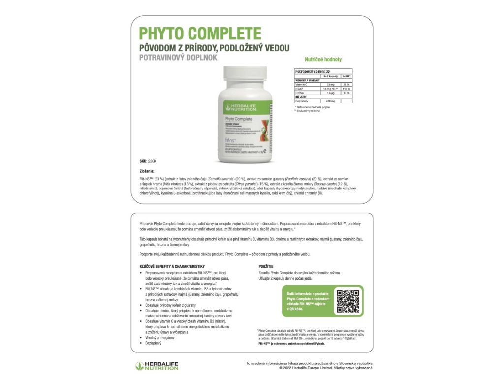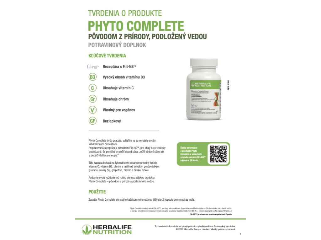 *Ustanovená odporúčaná denná dávka sa nesmie presahovať. Výživové doplnky sú určené ako doplnok bežnej stravy a nesmú sa používať ako náhrada rozmanitej stravy. Uskladňujte mimo dosahu malých detí! Produkt nie je vhodný pre deti. Produkt by sa nemal konzumovať nalačno. Produkt by nemali konzumovať tehotné alebo dojčiace ženu a deti vo veku menej ako 18 rokov. Produkt by ste nemali konzumovať, ak v ten istý deň konzumujete iné výrobky s obsahom zeleného čaju. Nepresahujte denné množstvo 800 mg alebo viac (-)-epigalokatechín-3-galátu (EGCG). EGCG v prípravku Phyto Complete: 90 mg (v 2 kapsulách).